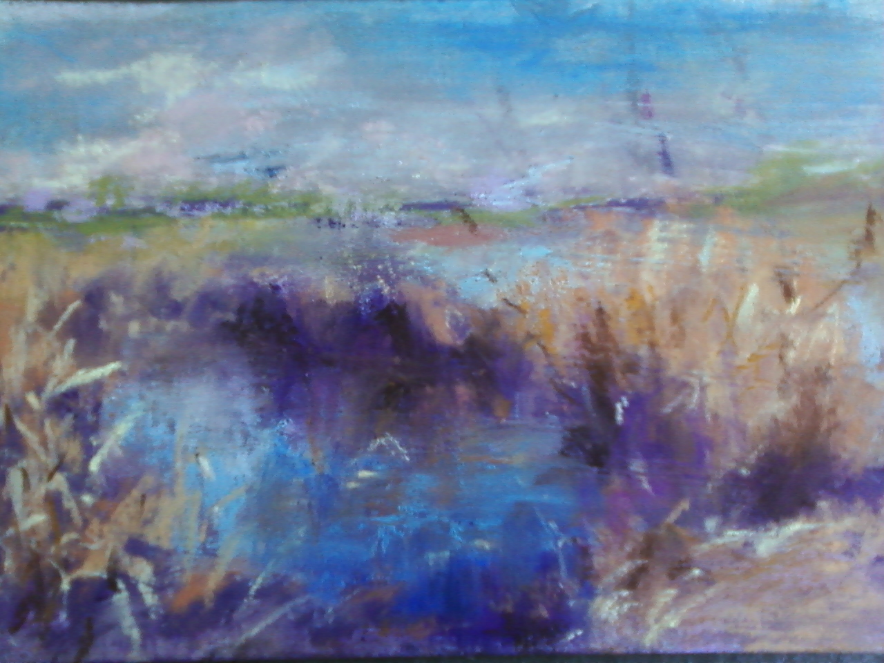 Imagepastel on mat board. I used the mat board and added gesso then Golden pastel ground.This is taken  from some beautiful scenery I saw while walking through the Sepulveda Reserve trail.