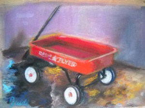 6″x 9″ pastel on Artspectrum Colourfix pastel paper .A childhood favorite-the little red wagon.
